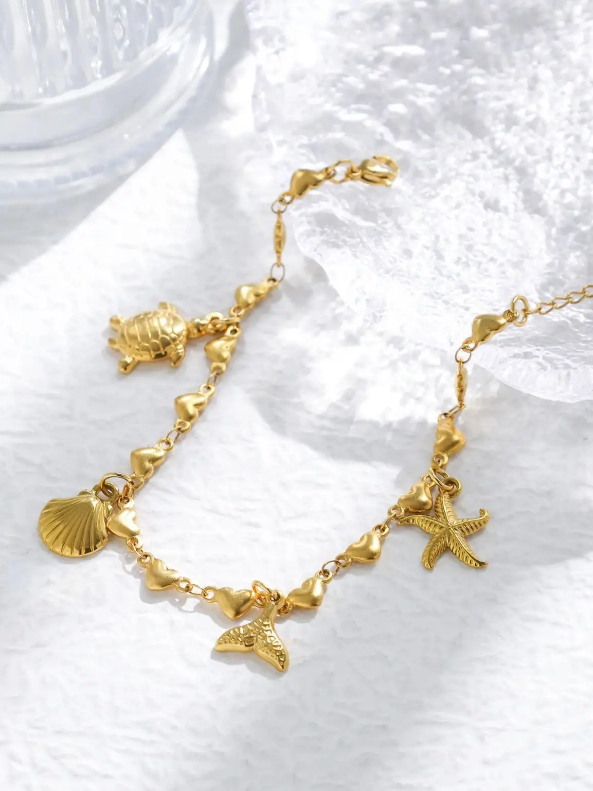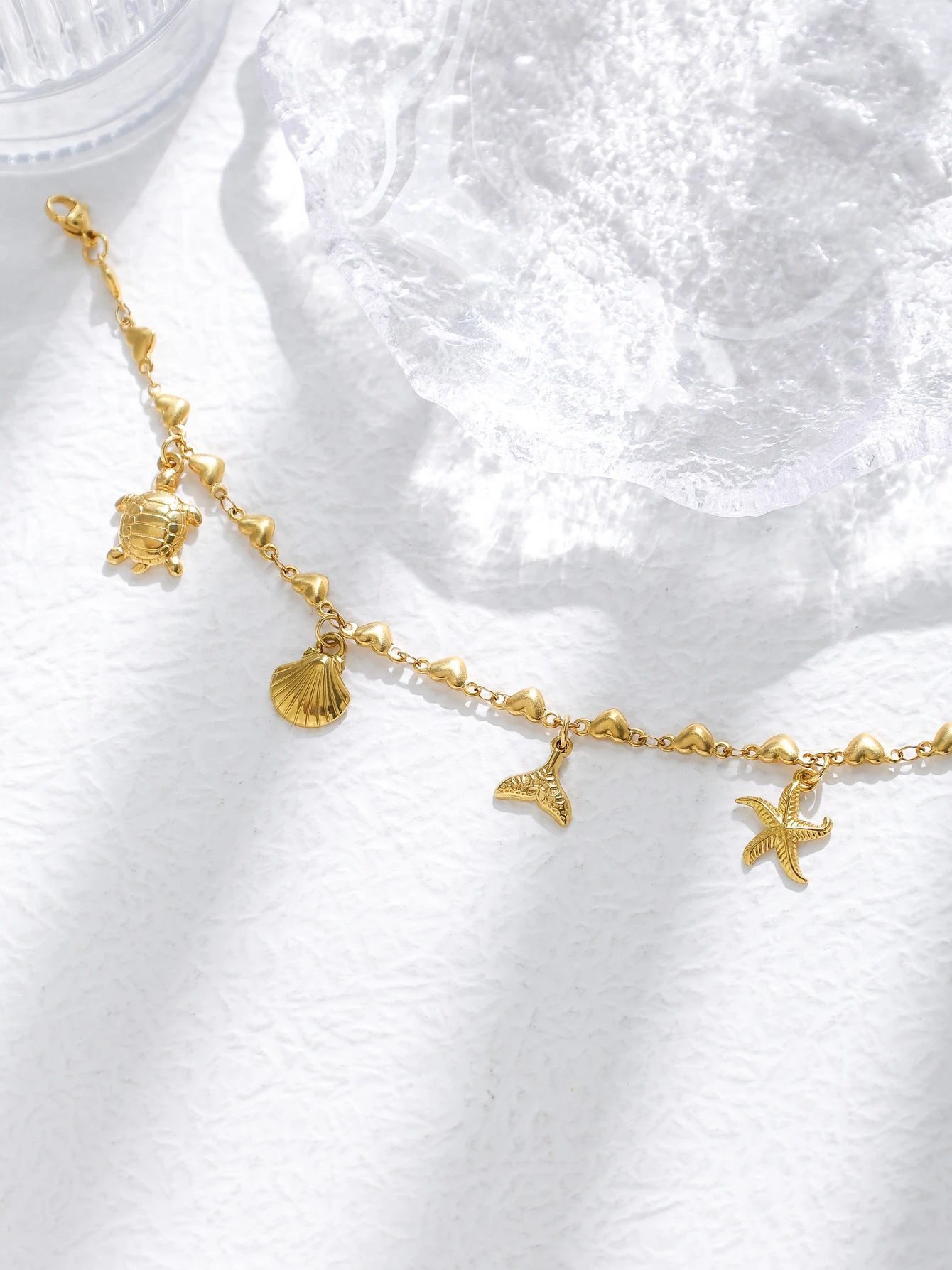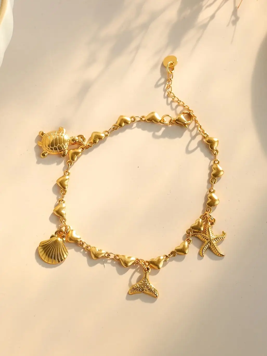 Stainless steel turtle starfish shell whale tail pendant women's retro peach heart-shaped bracelet personality goldplated jewely